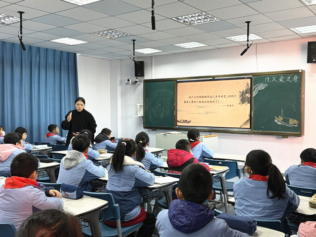 第一节冶山中心小学盛蕾老师的《父爱之舟》,以吴冠中画作“小船”为引,串联作家艺术成就与怀旧心愿,通过师生共读、小标题梳理场景、分段品读,让文学怀旧情怀与生活细节共振,为课堂注入情感温度。